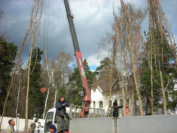 Посадка крупномеров (больших деревьев)